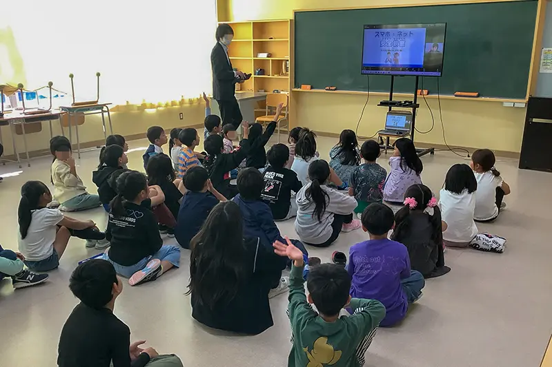 また、保護者の方にもご参加いただけるよう、「スマホ教室」もあわせて開催しました。ICT機器を活用する際に、情報を正しく判断し活用する力を身に付けること、そしてインターネット利用に伴うさまざまなリスクについて理解を深めることが目的でした。いかがだったでしょうか。お子さんは安全にスマホやiPad等を使っているでしょうか。ぜひご家庭でお話しください。