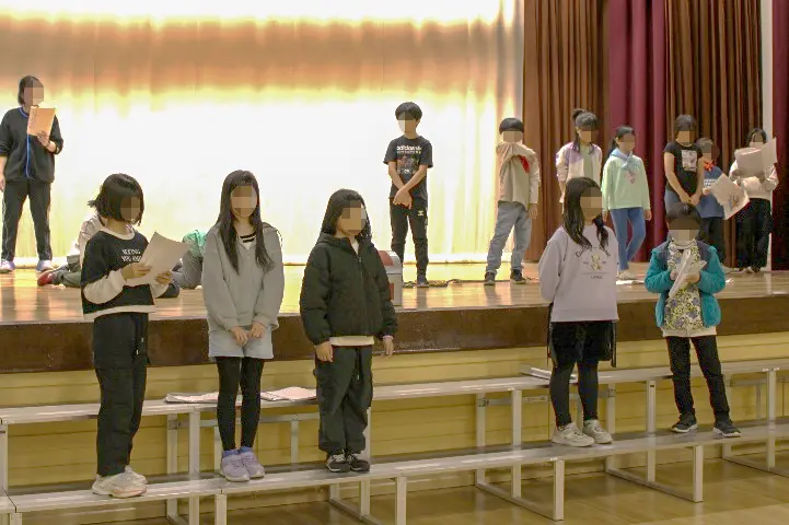令和5年度から3年計画で始まった長寿命化改修工事。令和5年度は校舎の外側、令和6年度は校舎内、令和7年度は体育館の工事を行いました。壁の色が明るくなり、LED電気がつき、教室にはエアコン、体育館の暖房も新しくなりました。そのような環境で、子どもたちはのびのびと生活したり勉強に励んだりしています。