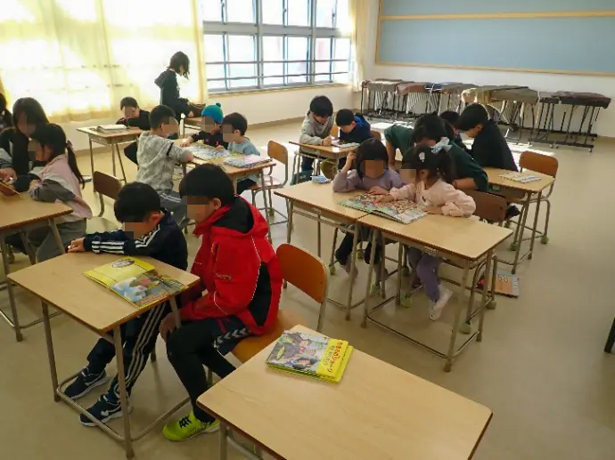 2月4日に新1年生の1日入学を行いました。1年生は年長児が楽しめるようにと「魚釣り体験」を準備していました。当日は、年長児に魚の作り方を教えたり、準備した魚釣り体験で楽しませたりと一生懸命に年長児の様子を見守っていました。4月から最高学年になる5年生は、年長児が時間まで安心して過ごせるように「本の読み聞かせ」をしてくれました。4月から仲間が増えます。楽しみですね。